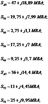 Определим по формулам (1) и (2) мощности на участках 3-5, 3-6, 3-4.