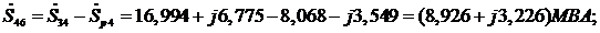 Определим мощности для остальных участков, пользуясь первым законом Кирхгофа.