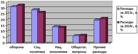 расходов в 2014г. на оборону страны, общегосударственные вопросы и прочие