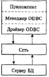 Рис. 7. ODBC в архитектуре клиент-сервер