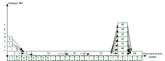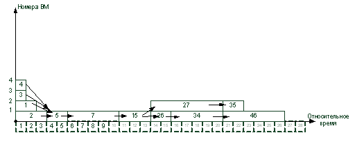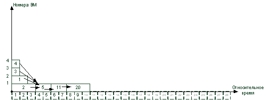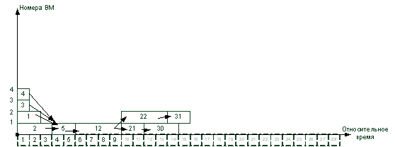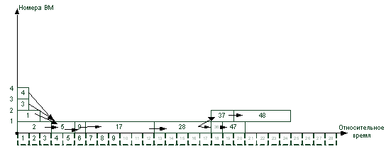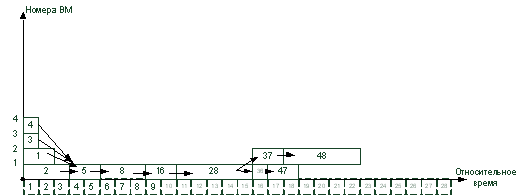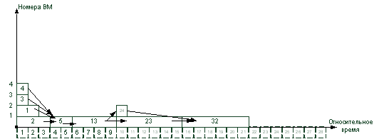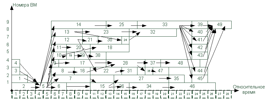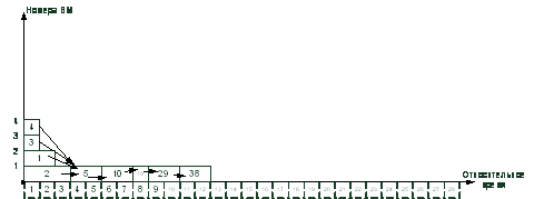 4. Вычисленные ранние сроки окончания выполнения операторов служат основой для построения диаграммы загрузки ВМ. Каждая строка диаграммы может служить нитью для загрузки в процессор.