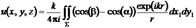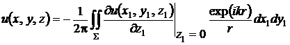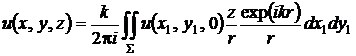 соотношении (7) представляет собой произведение медленно меняющейся функции zu(x1, y1)/r2 и быстро осциллирующей функции exp(ikr).