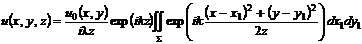 |y - y1|/z << 1, тогда r » z + [(x - x1)2 + (y - y1)2]/(2z), и интеграл (7) сводится к выражению, называемому приближением Френеля: