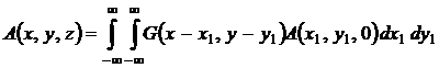 Аналогично вычисляется и интеграл по dkу. В результате для амплитуды волны A(x, y,