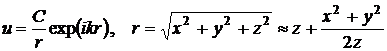 сферически расходящуюся волну, имеет при x/z