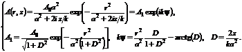 В соответствии с формулой (11) в сечении z = const пучок будет описываться функцией