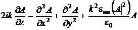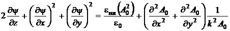 Уравнение ММА (25) совпадает с уравнением (20) при eнл = 0, то есть является квазиоптическим приближением для нелинейной среды. Для того чтобы перейти в уравнении (25) к действительным величинам, положим