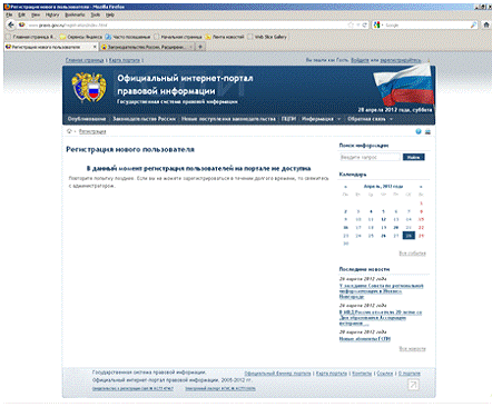 Рис. 2. Официальный Интернет-портал правовой информации Российской