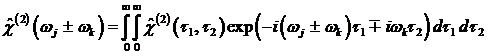 Так как в результате взаимодействия двух волн возникает третья волна на комбинационной частоте, то говорят, что на квадратичной нелинейности происходит трехчастотное взаимодействие. В общем случае выражение для тензора квадратичной восприимчивости как функции частоты имеет вид