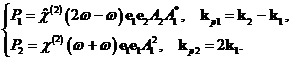 первой и второй гармоник в среде возбуждаются волны квадратичной поляризации.