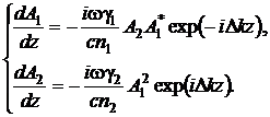На входе в нелинейную среду при z = 0 естественно задать граничные условия в виде А1(0) = Е01, А2(0) = 0.