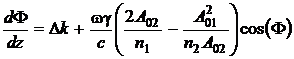 Если выполняется условие фазового синхронизма (17), то есть k2 = 2k1,