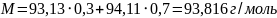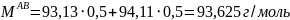 Молярную массу выпавших кристаллов состава 50% анилина- 50% фенола найдем по формуле: