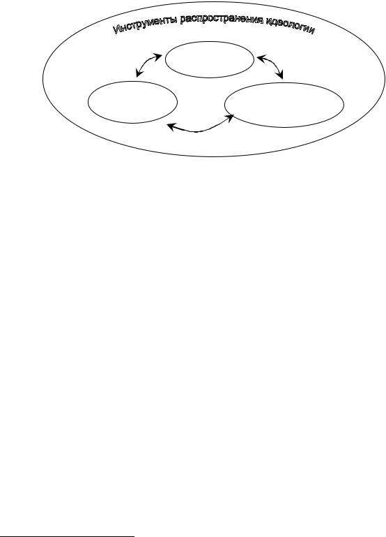 Указав на три основных инструмента распространения идеологии в Постсовременности, полагаем, что эффективность от их применения в наибольшей степени возможна при их взаимодействии (рис. 3.) 340.