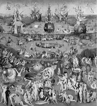 Одно из самых интересных, на мой взгляд, произведений искусства в этом ключе - триптих Иеронима Босха "Сад земных наслаждений" 1050 года, получивший своё название по теме центральной части. Эта работа - самое известное и самое загадочное произведение нидерландского художника, в ней его своеобразное видение мира проявилось в полной мере. Интересно, что ни одно из имеющихся на сегодняшний день толкований картины не признано единственно верным.