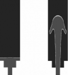 Конструкция сифонного металлопровода и входного патрубка. При использовании сифонного метода на начальных стадиях поступления металлического расплава в изложницу, особенно при высоких скоростях разливки, ввиду наличия интенсивного напора и малого сопротивления создаются условия для возникновения фонтана металлического расплава, что негативно отражается на качестве поверхности получаемого слитка. После того, как ванна металлического расплава в изложнице стабилизировалась, и мениск приобрел близкую к плоской форму, поступающий в изложницу поток стали может все еще сместить плавающий на поверхности металла защитный шлак на периферию, создавая оголенную поверхность (''глаз'') зеркала металла. Чрезмерно интенсивные потоки расплава в изложнице могут привести к оголению зеркала металла и, как следствие, к его вторичному окислению. Кроме того, при определенной скорости потоков в изложнице становится возможным захват покровного шлака в металлическую ванну. Этот эффект может быть уменьшен за счет оптимизации сечения каналов сифонной проводки и особенностей конструкции входного патрубка, через который металлический расплав поступает из сифонной проводки в изложницу.