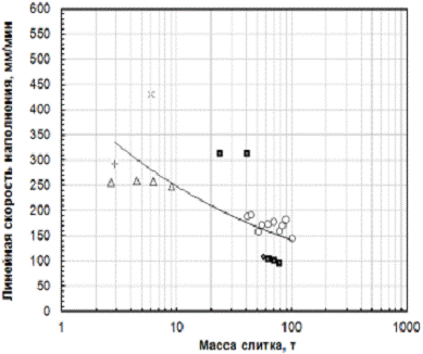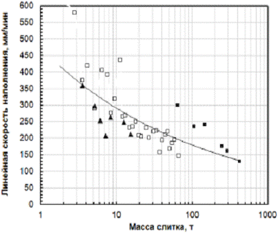 Рисунок 10 - Влияние скорости заполнения изложницы для