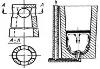 Рисунок 15 - Стакан с боковым выводом металла (б) и схема