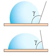 Рисунок 2. Краевой угол смачивания (γ) гидрофобной (не смачиваемой водой)