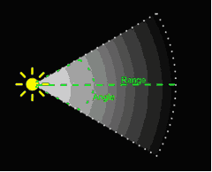сферы (круга в 2D пространстве), то spot light освещает только некоторый заданный сектор. Этот