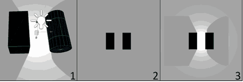 Мягкие тени состоят из двух регионов: полутень и полная тень. Полная тень представляет собой неосвещенные регионы, в то время как полутень отображает частично затененные области. Жесткие тени включают в себя только полные тени [13].