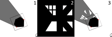Так как двухмерный объект представлен на сцене четырехугольной фигурой с наложенной на неё текстурой, определение формы освещаемого изображения на основе координат четырех вершин приведет к появлению неточностей в формировании области затенения. Таким образом, необходимо опираться либо на значение альфа-канала текстуры, либо на заданную отдельно геометрию объекта. Так как предполагается, что в разрабатываемой системе будет возможность задать форму тени, а для этого требуется знать координаты вершин, определяющих тень, о чем будет описано далее, был выбран второй вариант.