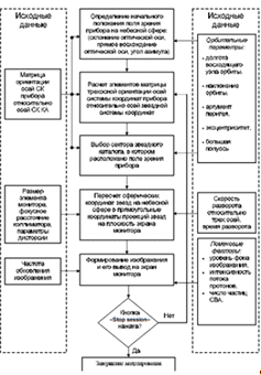 При моделировании на стенде звездного неба происходит пересчет сферических координат звезд на небесной сфере в прямоугольные координаты проекций звезд на плоскость экрана монитора, формирование графического изображения и его вывод на экран монитора.