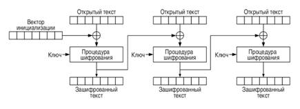 Шифрование следующих блоков производится по правилу: Ci = Ek (Pi Å Ci-1, k), где i - номер блока.