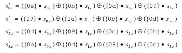Рис. 25. Матричная форма перемножения для трансформации InvMixColumns().