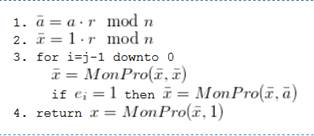Алгоритм Монтгомери для ПЛИС неоправдан, так как в промежуточные вычисления требуют синтезируемых конструкций взятия числа по модулю.