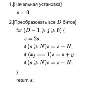 Рис. 32. Алгоритм возведения в степень по модулю.