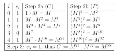 оправдывает себя для возведения чисел в степень по модулю. Алгоритм показан на