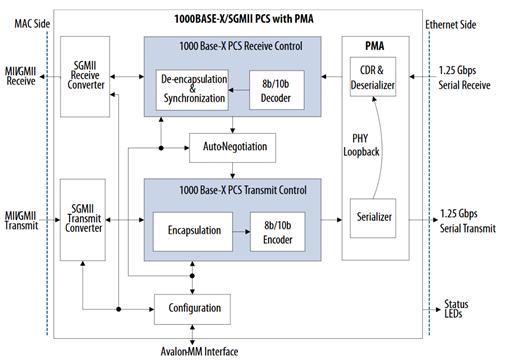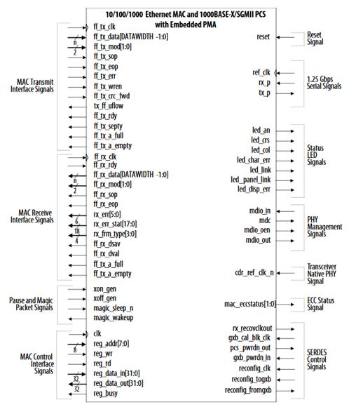 В данной работе используется стандарт 1000Base-X. Для реализации 1000BASE-X необходимо реализовать PCS и PMA. Реализация в ядре MAC показана на рис. 37.
