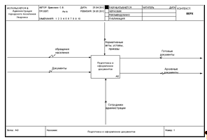 Количество обрабатываемой информации стремительно растет. Организация сталкивается с проблемой работы со значительными массивами информации. Для анализа существующей технологии разработана структурно-функциональная диаграмма по методологии SADT (IDEF0) с использованием CASE средства Ramus [1.4].