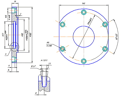1. Сверлить 6 отверстия Ø9 последовательно по программе.