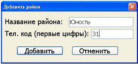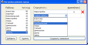 окно, содержашее информацию по районам города, которую при необходимости можно