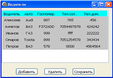 содержащее необходимую информацию о водителях таксопарка (рисунок 15).