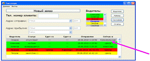 водителя поменяется на «возвращается» и соответственно цвет «зеленый» (рисунок