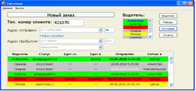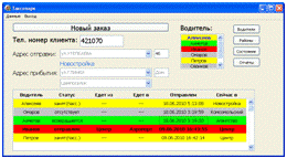 Также хочется отметить, что в главной таблице ведется контроль за всеми машинами таксопарка. Наглядно видно, где сейчас находится машина, когда была отправлена, в какой район, откуда, с какого места едет. Также статус показывает, в каком сейчас состоянии водитель: отправлен, отсутствует, возвращается, занят. И цветом показаны статусы водителей, для большей видимости.