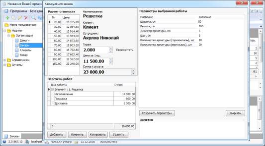 Программа расчета себестоимости изделия УСУ - это универсальный инструмент, способный комплексно охватить все стороны деятельности предприятия, с его помощью можно проводить не только калькуляцию, но будет доступно ведение клиентской базы, регистрация заказов и склада, формирование аналитики и различных отчетов и многое другое.