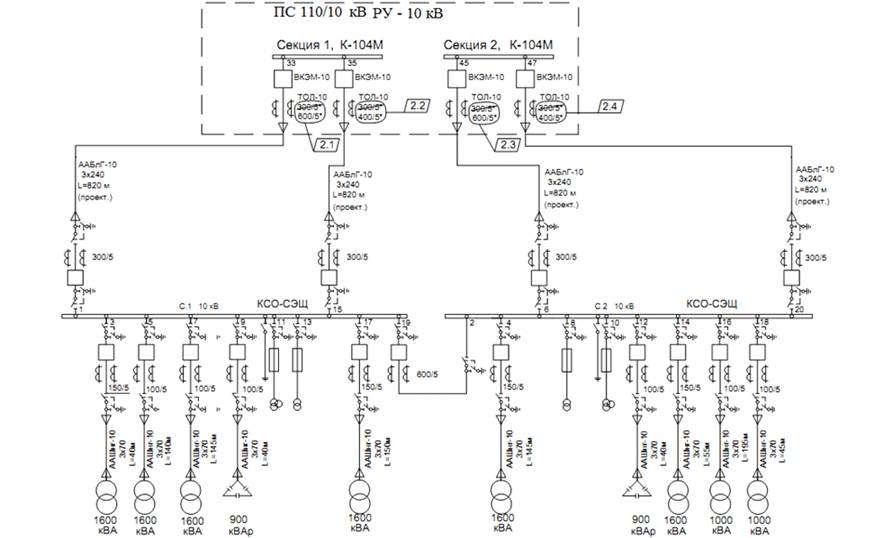На рисунке 2 представлена однолинейная схема электроснабжения