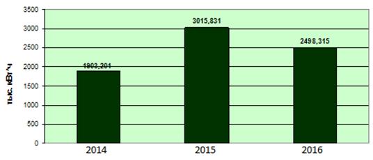 На рисунке 5 представлена динамика потребления электроэнергии объекта ООО «УЗХНО» с 2014 по 2016 гг.