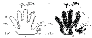 Рис. 1.1 Выделение движущейся руки на основе двух методов: поиск контуров