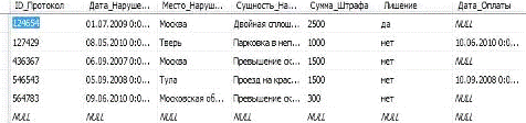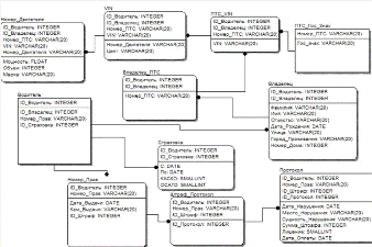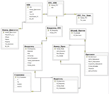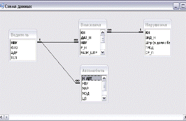 представлена схема данных базы данных ГАИ.