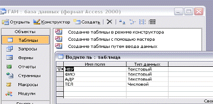 Рассмотрим проектирование базы данных ГАИ. В ней могут быть определены четыре сущности: сущность «водитель» - содержит персональную информацию о водителях, сущность «автомобили» - содержит информацию об автомобилях, сущность «нарушения» - содержит о нарушениях правил дорожного движения, сущность «взыскания» - содержит информацию о взысканиях с водителей-нарушителей.