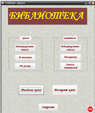 Форма имеет две основные, наиболее используемые, кнопки: Выдача книг и