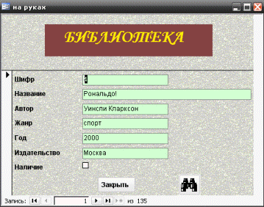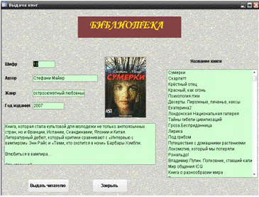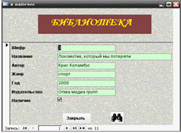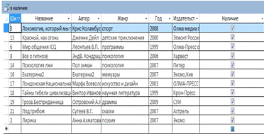 Рис.8. Форма для книг, находящихся в наличии в библиотеке