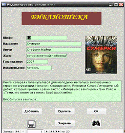 и удаления книг, а так же для редактирования данных имеющихся книг. В форме
