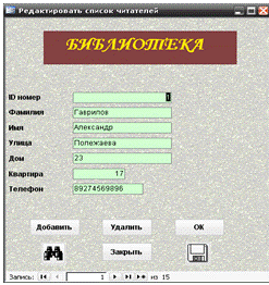 читателей, а так же для редактирования данных о имеющихся читателях. В форме