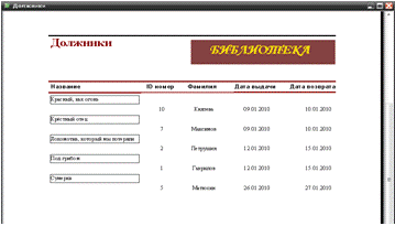 Запрос «Должники» показывает тех, кто должен книги в библиотеку.